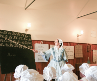This program provides students with the opportunity to experience common school life in the 1860’s, early 1870’s through role-play. Participating students dress in costume and engage in appropriate curriculum areas such as arithmetic (time tables), copperplate writing on slates with slate pencils, class reading and spelling.